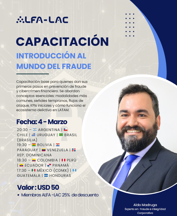Alianza Latinoamericana contra el Fraude y Lavado de Activos. Construimos comunidad para mitigar los Crímenes Financieros. Reúne a líderes comprometidos en prevenir y fortalecer la confianza en las instituciones.